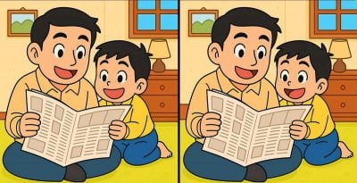 Tak čo, ste pripravení na ďalšiu výzvu? Pozrite sa na dva obrázky otca a syna, ktorí čítajú noviny. Na prvý pohľad môžu obrázky vyzerať rovnako, ale sú na nich ukryté 3 rozdiely a vašou úlohou je čo najskôr ich nájsť. Podarí sa vám ich všetky nájsť za 45 sekúnd? Skúste vyriešiť túto hádanku a zistite, ako ste bystrí!