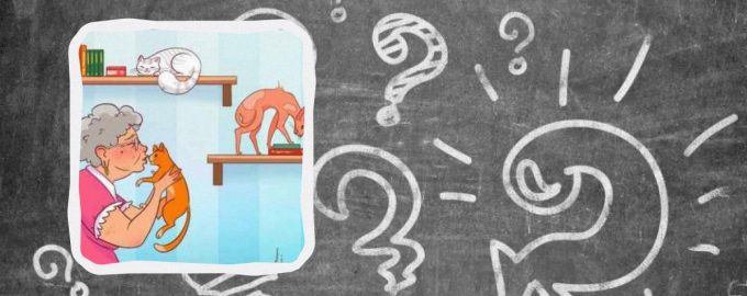 Na obrázku je dôchodca obklopený domácimi zvieratami. V miestnosti sa hrajú a odpočívajú mačky a kocúri rôznych plemien. Môže sa zdať, že na obrázku nie je nič zbytočné, ale nie je to tak – umelec tu skryl nedôslednosť.