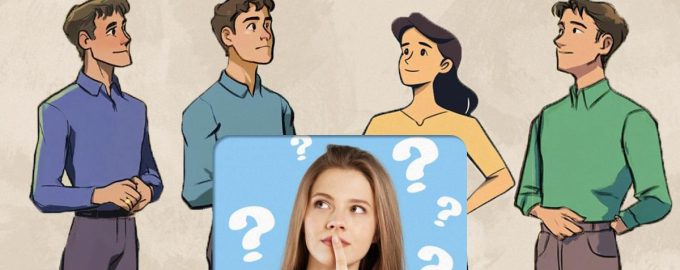 Ste pripravení? Nižšie uvidíte obrázok ženy a troch mužov. Musíte určiť, čí je žena v žltej blúzke.