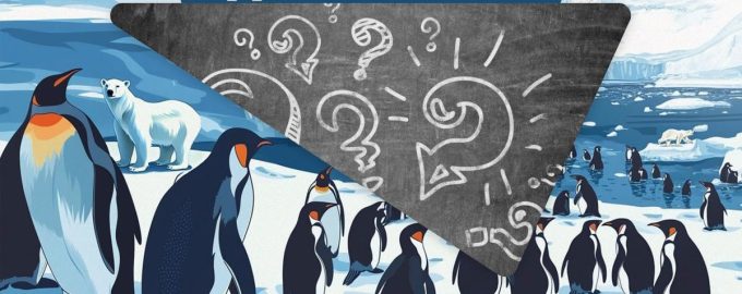Chyba je v tom, že tučniaky a ľadové medvede žijú na rôznych póloch Zeme. Tučniaky žijú na južnom póle v Antarktíde a ľadové medvede na severnom póle v Arktíde. A nemajú sa stretávať.