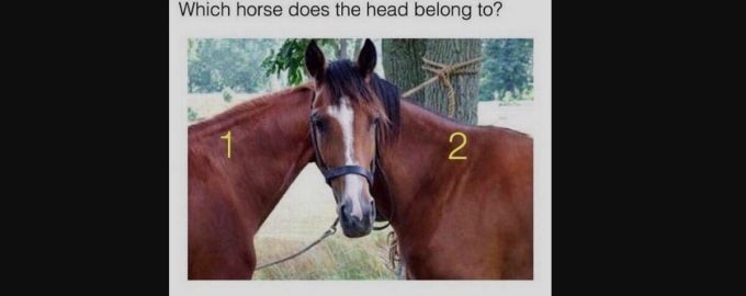 Na optickej ilúzii môžete vidieť dva kone, z ktorých jeden sa otočil, aby sa pozrel do fotoaparátu. Úlohou je zistiť, ktorý kôň sa pozerá na vás.