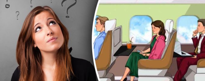 Na obrázku vidíme troch ľudí, ktorí sedia na svojich miestach v lietadle – sú to dvaja muži a jedna žena. Na prvý pohľad nikto z nich nevyzerá podozrivo. Musíte sa poriadne zamyslieť, aby ste prišli na to, ktorý z nich je podvodník.