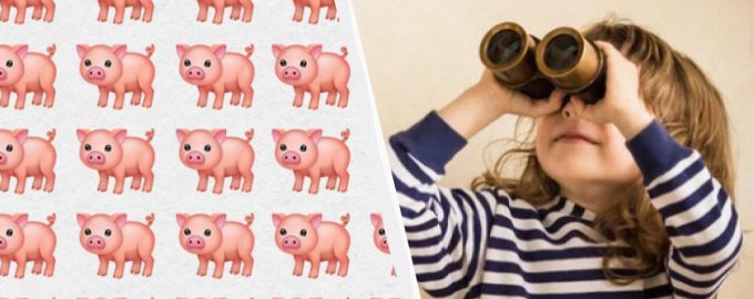 Ponúkame teda prekvapivo zložitý obrázok, na ktorom sa nachádza v rade 108 prasiatok. Niekde tam je ukryté „prasiatko Peppa“, alebo skôr to prasiatko, ktoré bude niečím iné ako ostatné.