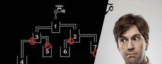 Na prvý pohľad to vyzerá, že miska 4 sa zaplní ako prvá, pretože je na dne. Ak sa však pozriete pozorne, uvidíte, že rúrka spájajúca misku 3 a misku 4 nemá žiadny otvor, čo znamená, že cez ňu nemôže pretekať voda. Potrubia medzi niektorými miskami sú otvorené pre vodu a potom je tu miska s otvorom. Miska 3 sa teda naplní ako prvá. Miska 2 sa však nikdy nenaplní, pretože pod ňou sa nachádza miska 7, ktorá je netesná.