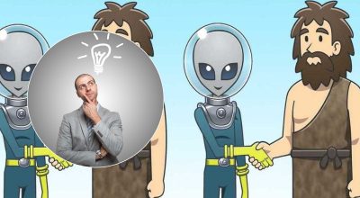 Na prezentovanom obrázku si môžete všimnúť dvoch rovnakých mimozemšťanov a dvoch jaskynných ľudí.