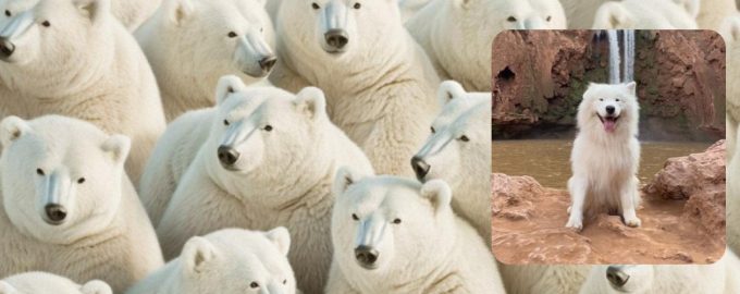 Na nasledujúcom obrázku uvidíte hneď niekoľko desiatok medveďov, ale budete mať čo robiť, aby ste našli psa samojeda.