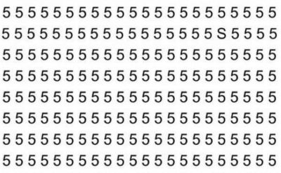 Na obrázku je tabuľka s veľkým počtom číslic 5. Medzi nimi musíte nájsť písmeno S. Keď je číslic veľa, vizuálne môže S vyzerať ako 5, preto je ťažké ho nájsť.