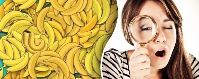 Na obrázku vidíme veľké množstvo banánov, ktoré sú umiestnené chaoticky. Na prvý pohľad sa môže zdať, že na obrázku okrem ovocia nič iné nie je, ale nie je to tak – niekde je ukryté zviera, ktoré bude ťažké spozorovať.